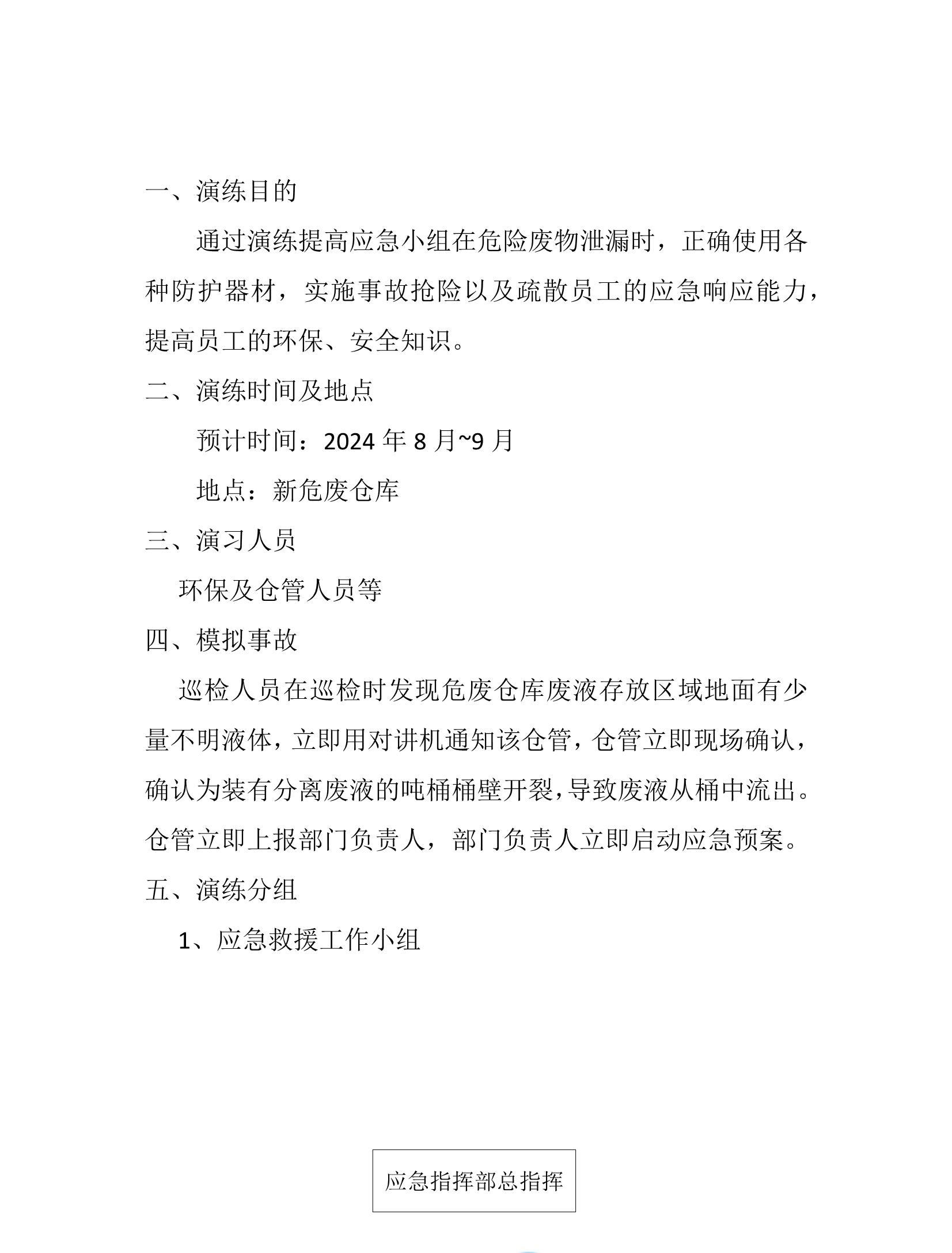 江西新嘉懿新材料有限公司 2024年危險廢物泄漏應急演練方案